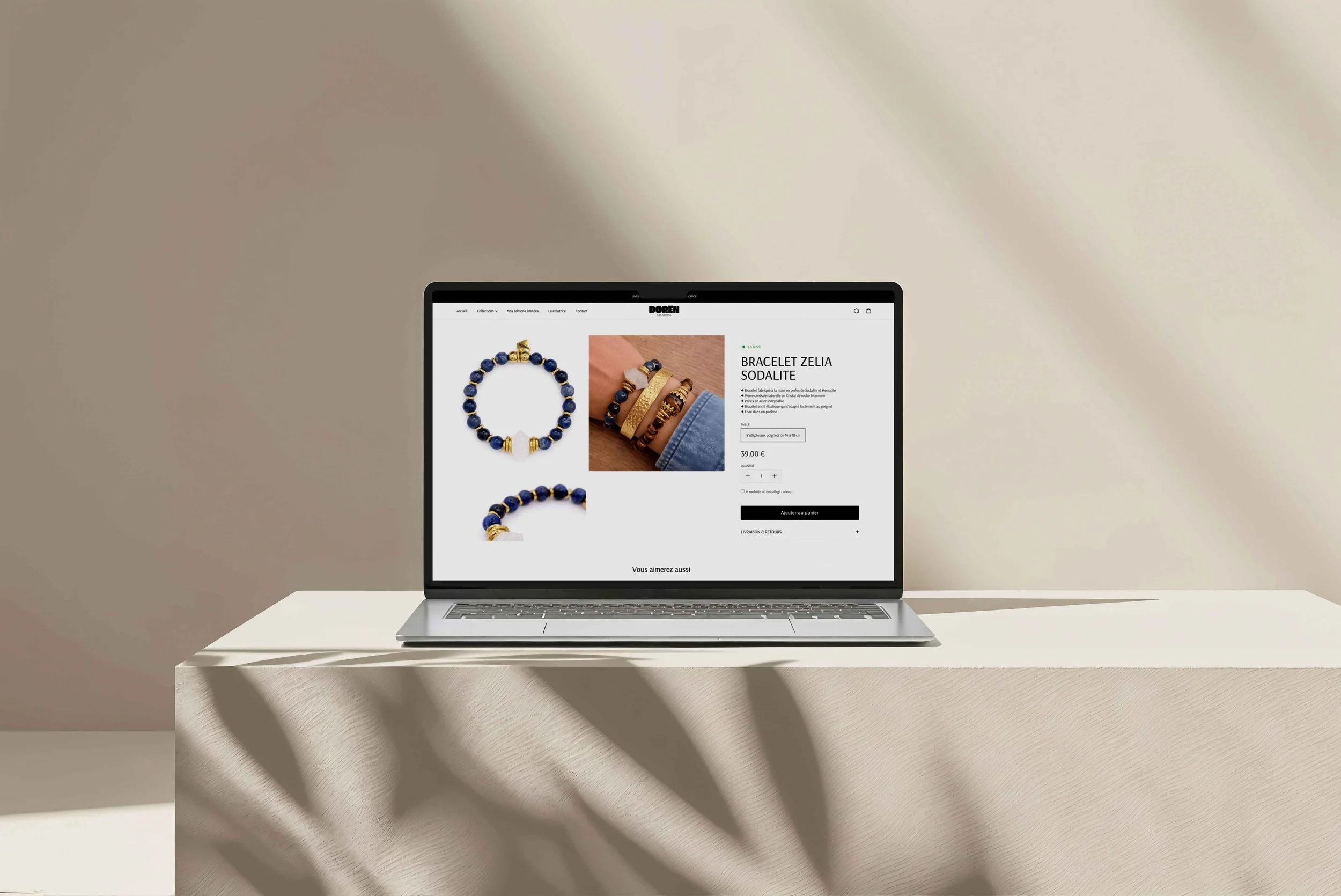 L'objectif était de traduire l'aspect artisanal et précieux de la marque. Nous avons misé sur une typographie à empattements fine et moderne, symbolisant le luxe accessible.